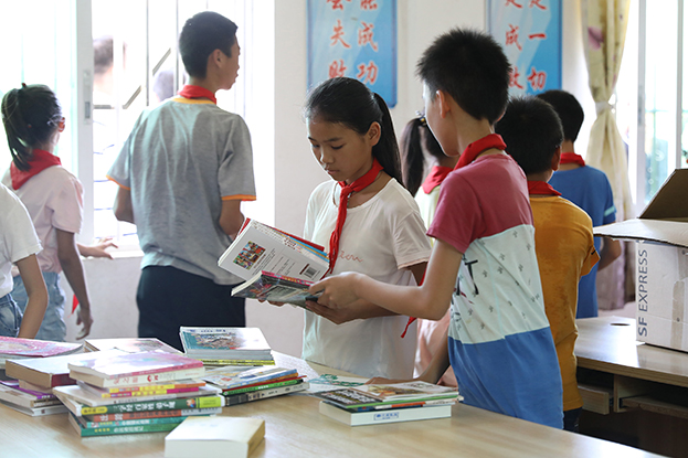 据了解,鹧洞学校现有学生104人,仅8位教师,课外资源匮乏。鹧洞学校的图书室只有一两个书柜,上面零散的摆放了一些旧书,如果没有爱心企业捐赠,学校平时很少会有新的课外书补充。